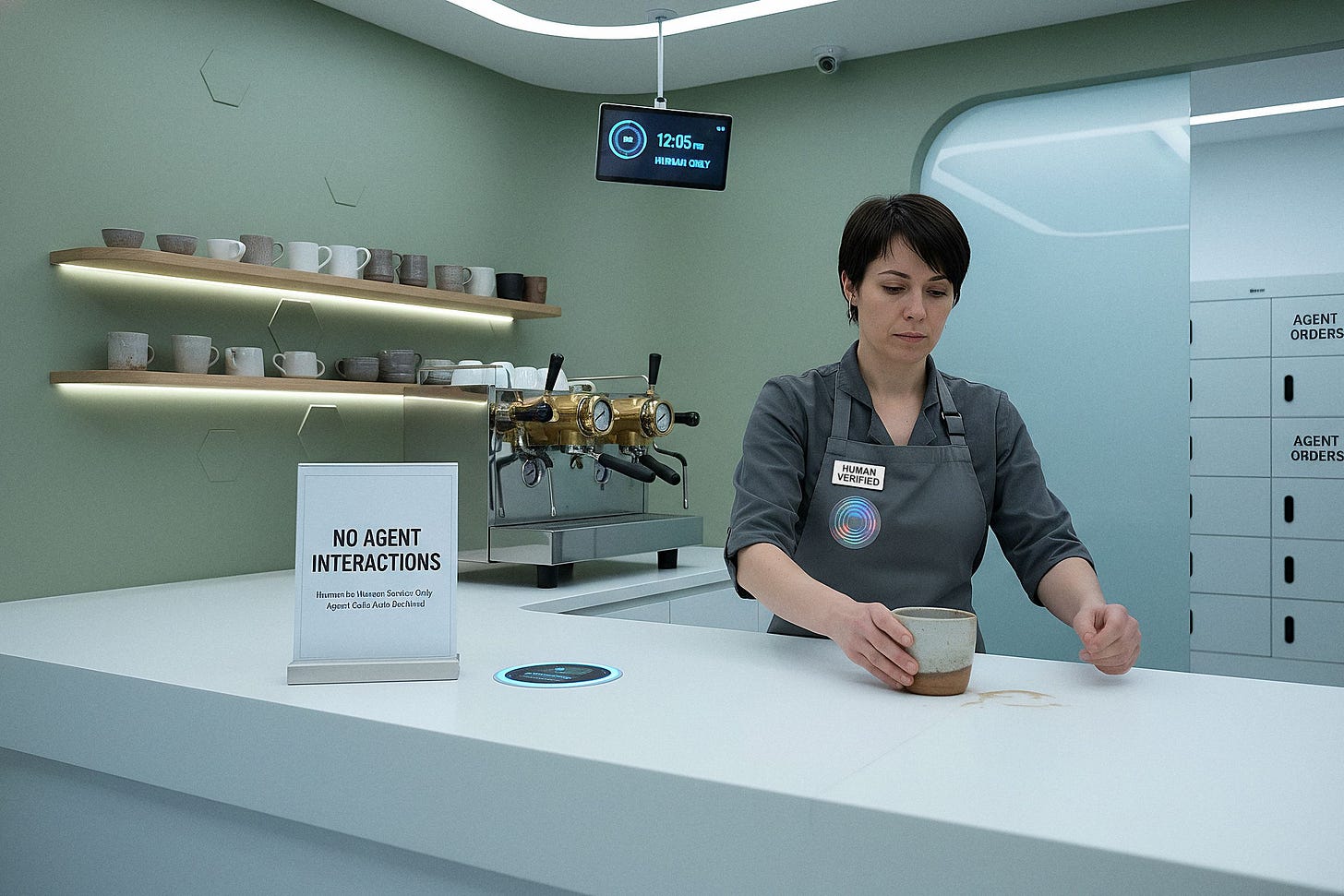 The barista at the coffee shop—human, verified, with a laminated “No Agent Interactions” sign—summed it up perfectly: “At least with regular capitalism, you knew you were getting screwed. Now you need a quarterly audit to find out how much.”