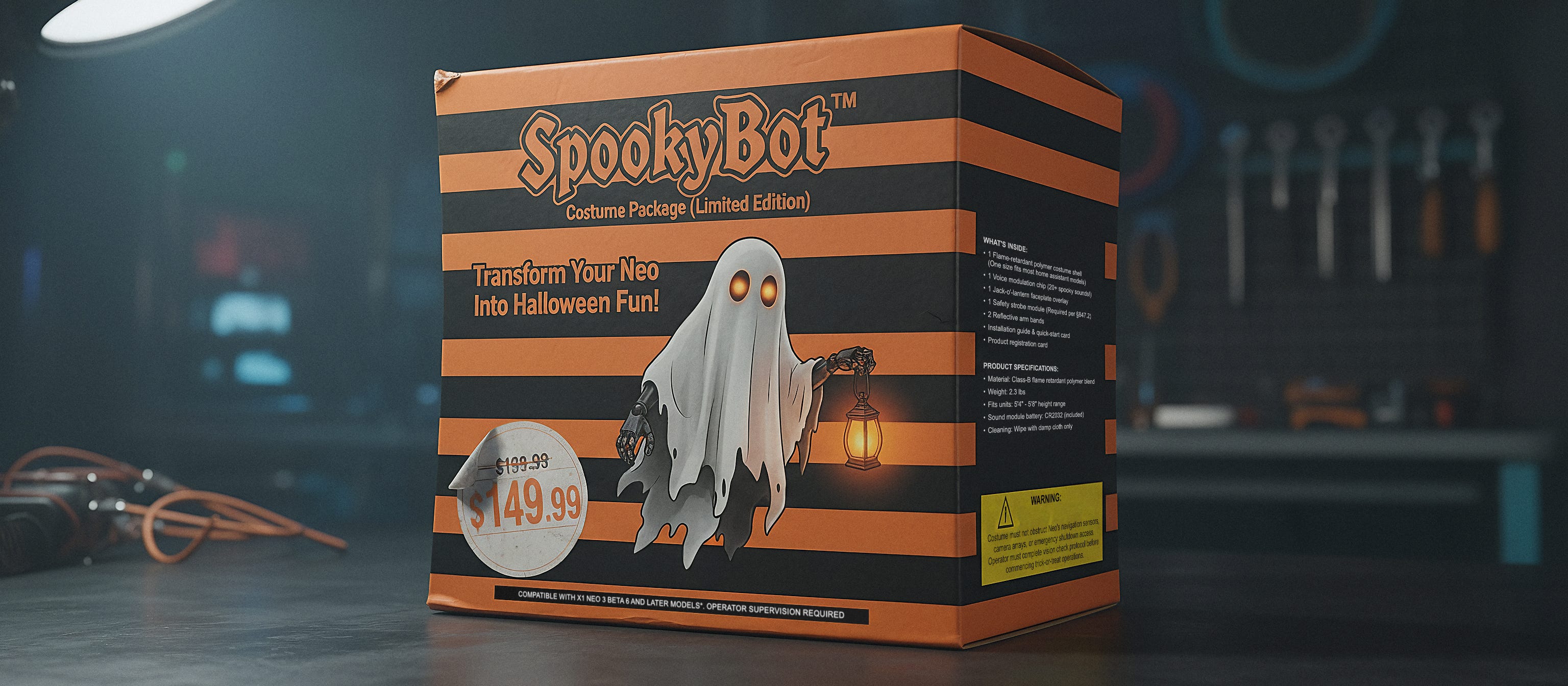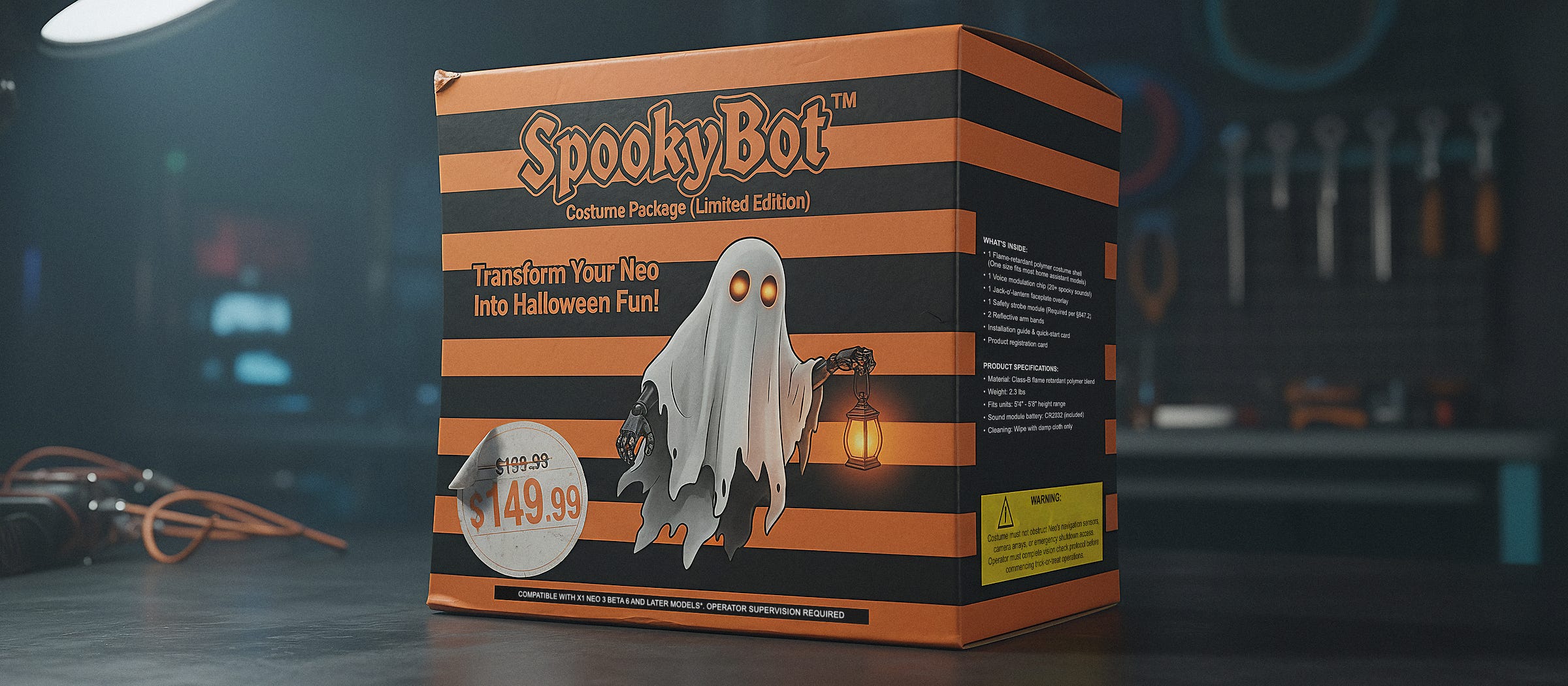 Watched two Neo units get into what I can only describe as a very polite standoff over a “TAKE ONE” bowl. Their operators—one in Manila, one in Bangalore, based on the accent fragments I could hear through the external speakers—spent three minutes negotiating in broken English while a dozen other robots queued up behind them. One was dressed as a ghost. One had a pumpkin head. All of them waiting patiently in a line that would make a British person weep with pride.